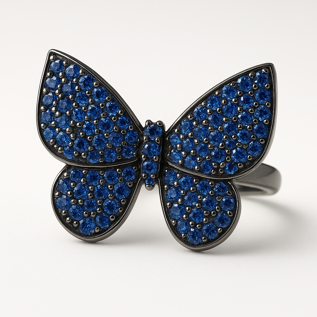 Quer um anel cheio de personalidade e estilo? Pois então já achou! Nosso anel de borboleta é todo banhado no ródio negro e a sua borboleta lindíssima é grande e toda cravejada na micrôzirconia azul. Com toda certeza essa é aquela semijoia pra não passar despercebida, é de se apaixonar! Você pode combinar esse anel de formas diferentes para ter o resultado do look que quiser! Ele é compatível com vários estilos: o romântico, o moderno, o elegante, o criativo, o tradicional, o sofisticado e o sexy. Ele pode ser usado desde uma festa de casamento, uma reunião formal, o happy hour até o fim de semana descontraído na praia. Use a criatividade, separe suas borboletas e desfrute do que elas simbolizam: renascimento, ligeireza, inconstância, liberdade, beleza e autoestima.