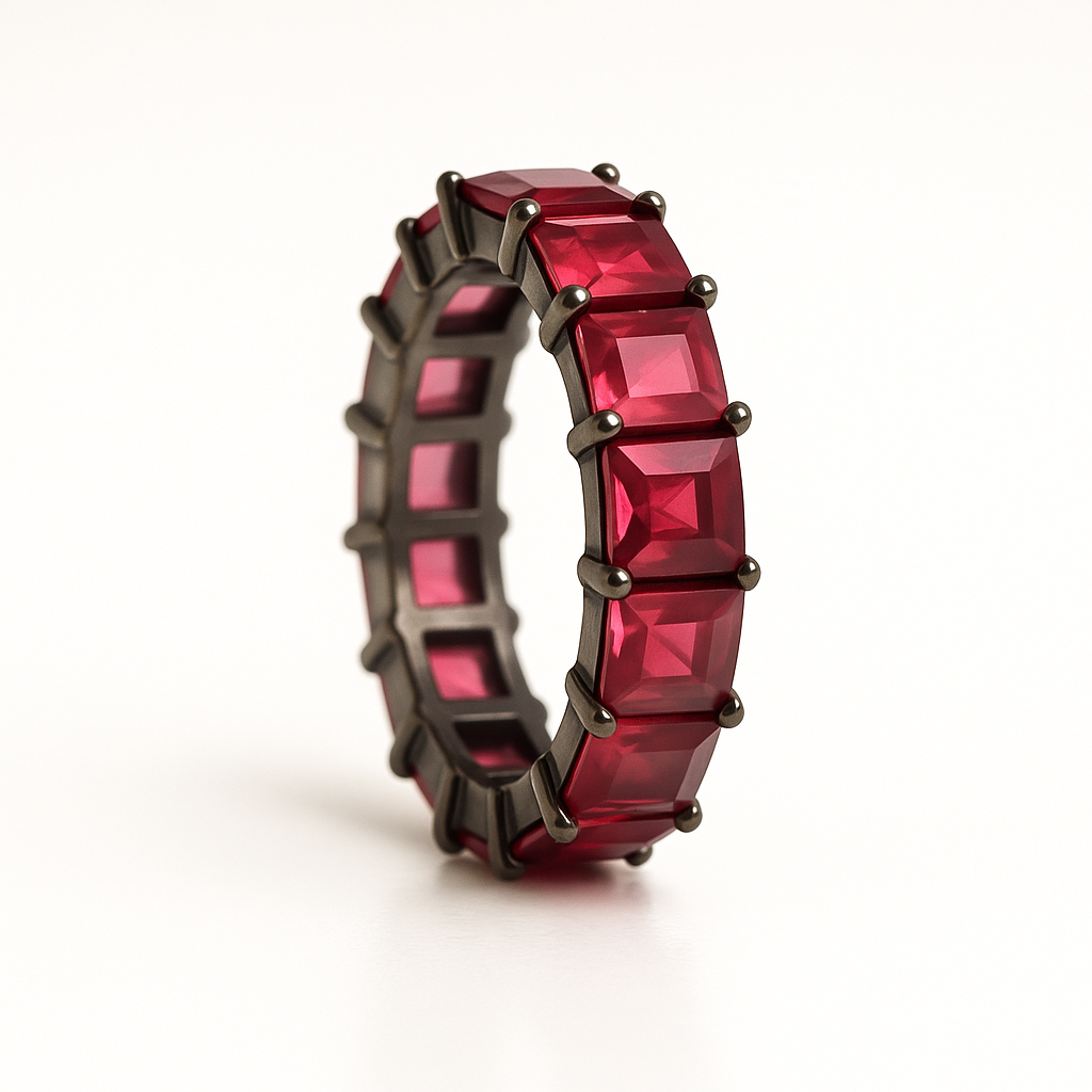 Uma semijoia que traduz versatilidade e beleza com toda certeza é essa! Esse anel é banhado em ródio negro em formato de meia aliança e é cheinho de pedras pequenas de granada em acabamento leitoso de lapidação retangular em todo o seu aro, uma semijoia para se encantar. A pedra de granada é muito poderosa, pois é uma pedra com muitos benefícios. Ela favorece o sucesso, desenvolvimento pessoal, proteção e força pessoal. Atrai prosperidade, crescimento pessoal, melhora a circulação sanguínea, ajuda no controle da pressão, protege o coração, estimula o metabolismo, afasta as energias negativas e o cansaço, e facilita a disposição, fortalece a saúde, aumenta a alegria e determinação, inspira o amor, atrai a ordem quando há o caos e purifica tudo o que não estiver bem. Você pode usar suas pedras de granada de inúmeras formas, é só usar a criatividade! Adicione este anel junto com a aliança, tendo o resultado de um lindo aparador ou crie um mix de anéis e faça misturinhas com ele, você vai se apaixonar! Ele combina com todos os momentos da vida, desde uma reunião de trabalho, uma formatura, casamento, até aquele dia de calça jeans e tênis. Esse anel é compatível com todos os sete estilos universais da moda, separe o seu e multiplique seus looks com ele!