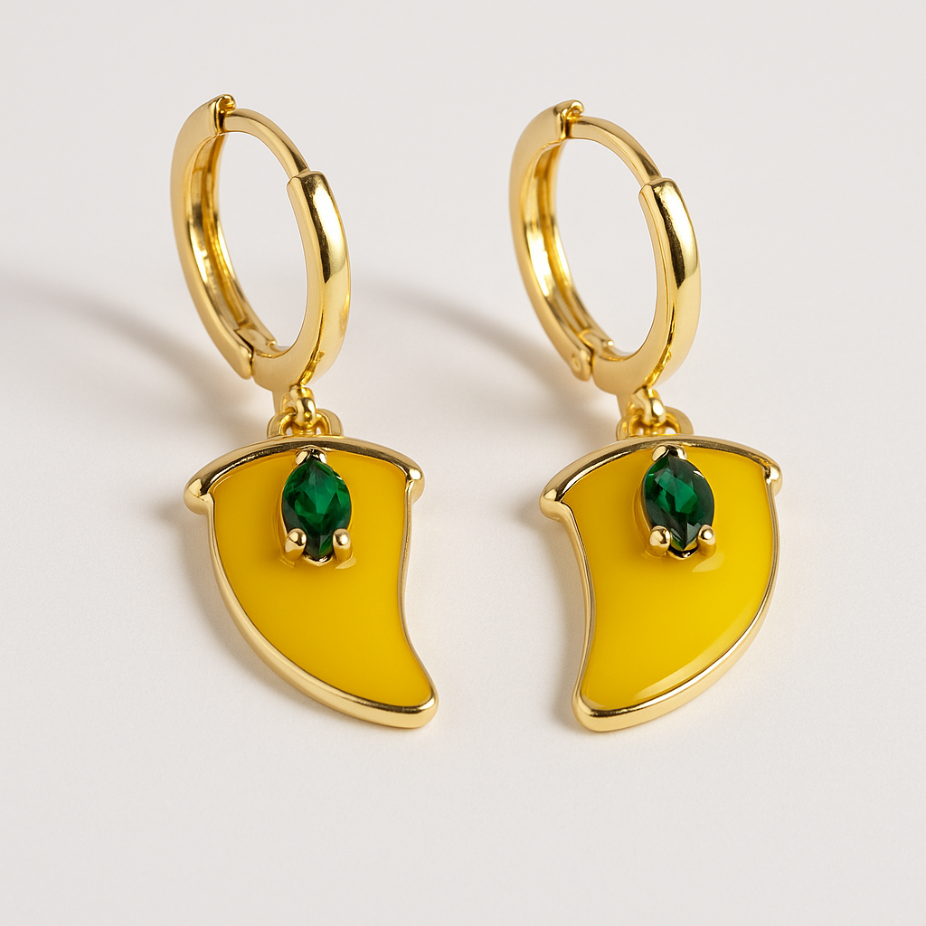 Brinco Dente-de-sabre Amarelo Banhado A Ouro